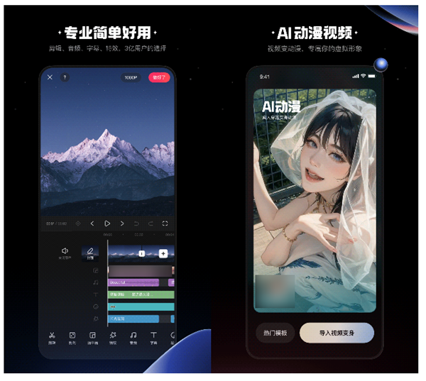 软件主打的就是一个轻松易上手,能够让很多剪辑小白也可以制作出酷炫的视频效果。使用本工具中的素材库和音效、音乐库能够迅速完成视频配音配乐工作,还可以一键完成字幕的识别添加。这款软件还带有诸多的视频滤镜以及特效插件,比如说将视频中人物形象快速转化为二次元动漫风格,或者是自己创建虚拟形象进行视频讲解,适用性非常广。