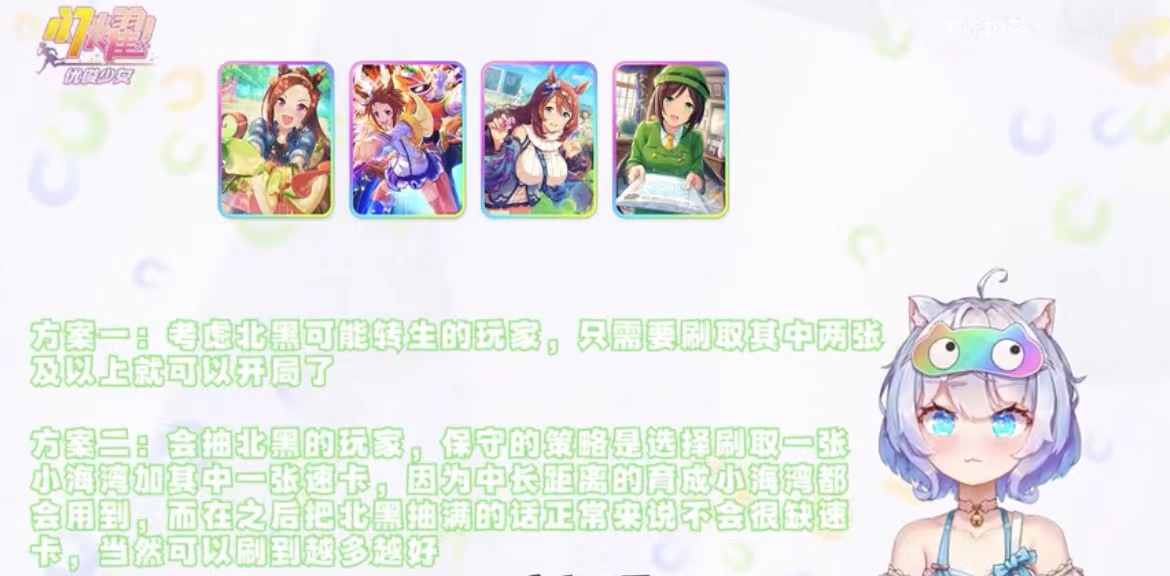 如果是新手玩家想要在开局的时候,就让自己的人物属性变得更强,可以选择搭配多种支援卡片,任意一个志愿卡片都可以给你的角色带来更大的增益效果,还能让你在比赛的时候更加顺利,初始的资源卡片通常都是ssr级别的,这个卡片可以随意搭配在任何一个角色上。