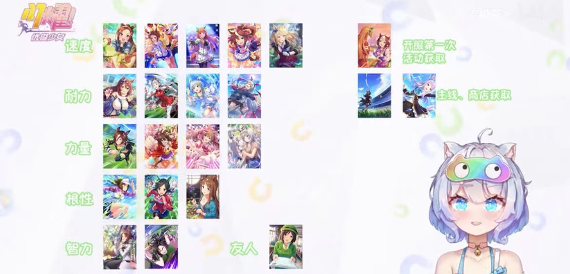 首先在这款游戏中有各种类型的支援卡片,例如速度,耐力,力量,智力等等,这些卡片针对不同属性的角色,但是玩家在搭配的时候也需要注意某一些属性的卡片,需要在一定的时间内才可以使用。