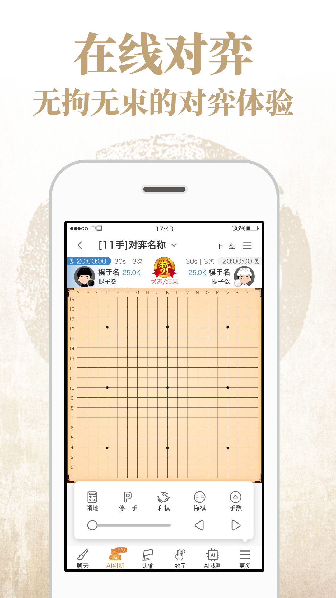 这款APP是可以作为大家在考试围棋等级的时候,一种模拟练习平台。这里提供了最专业,最真实的围棋考试的模拟测试。用户在这里通过围棋的实训训练之后,而且通过多次的模拟考试。这样在参加围棋协会的等级考试之时,能够通过的几率就会更高。同时这里还会提供各种AI对弈,AI训练。