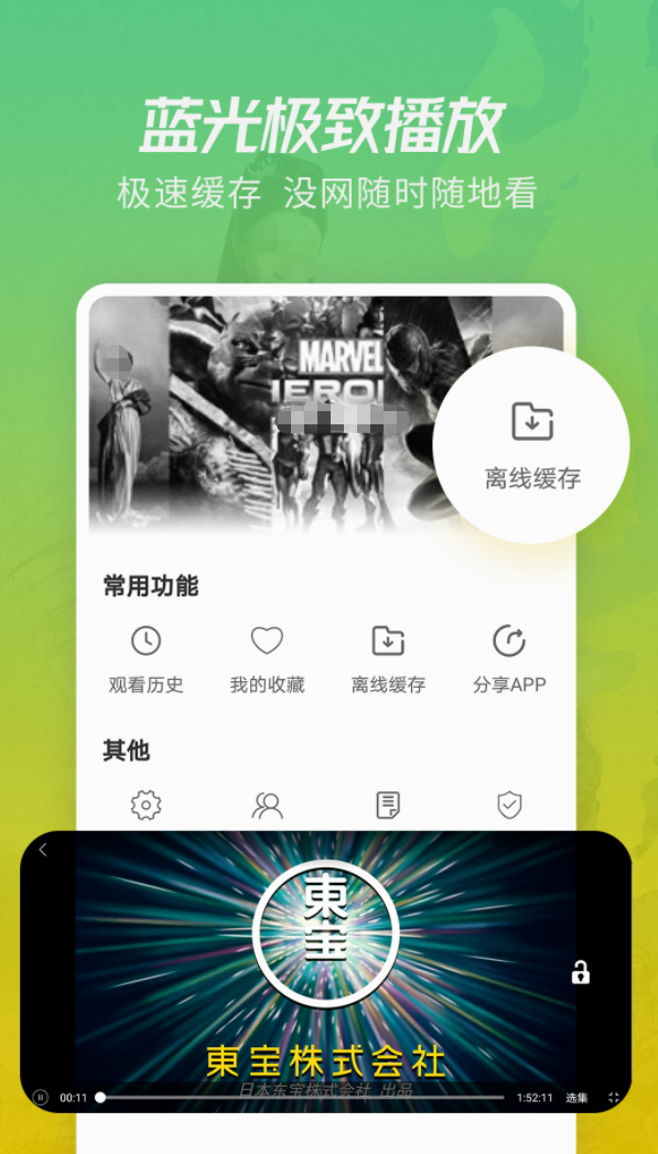 不用特殊解码,也不用自己去寻找链接,走进去就像一个电影院一样选择影片播放,可每一次在播放时都能自定义清晰度,也能够去将电影链接下载到其他播放器中进行解码播放。