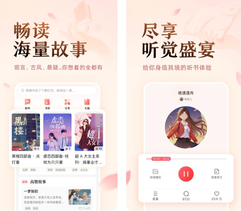 软件中含有一些不错的连载小说,作者会定时更新,让读者准时看到新的内容。要是你一时找不到想看的图书,那么可以去看看平台制作的必读专区,其中收录了很多爆火的书籍,说不定里面就有你爱看的。如果看书时间长,眼部有些疲劳,那么可以切到听书模式,选择一个喜爱的声音,去阅读书中内容。