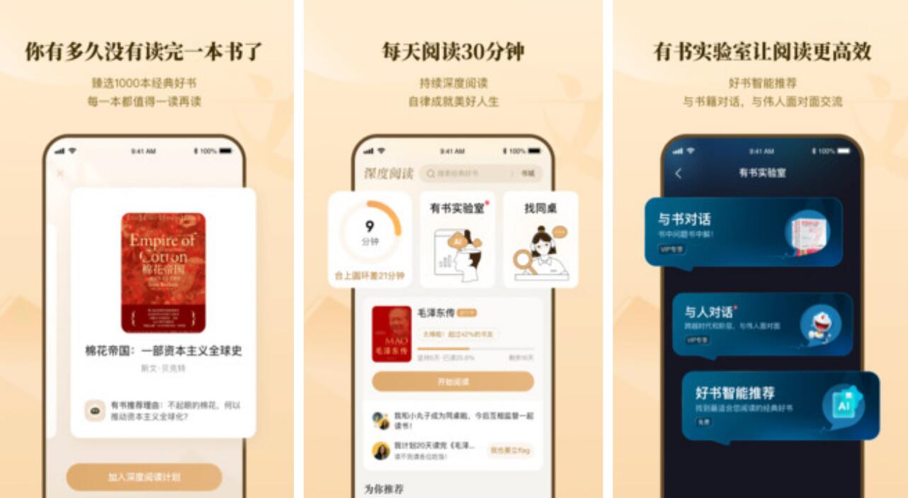 对于那些资深的读者,如何找到好看的图书,一直是一个比较头疼的问题,为此,平台专门推出了一个阅读计划,用户加入后,系统就会为你自动推荐书籍,读完一本之后,就会继续为你建议新的图书,让你始终有书读。一个人去看书,很多人很难坚持下去,在这款软件中,你可以自由寻找同桌,组队进行阅读,在读书的过程中,如果看到了不错的段落,可以和他们分享。