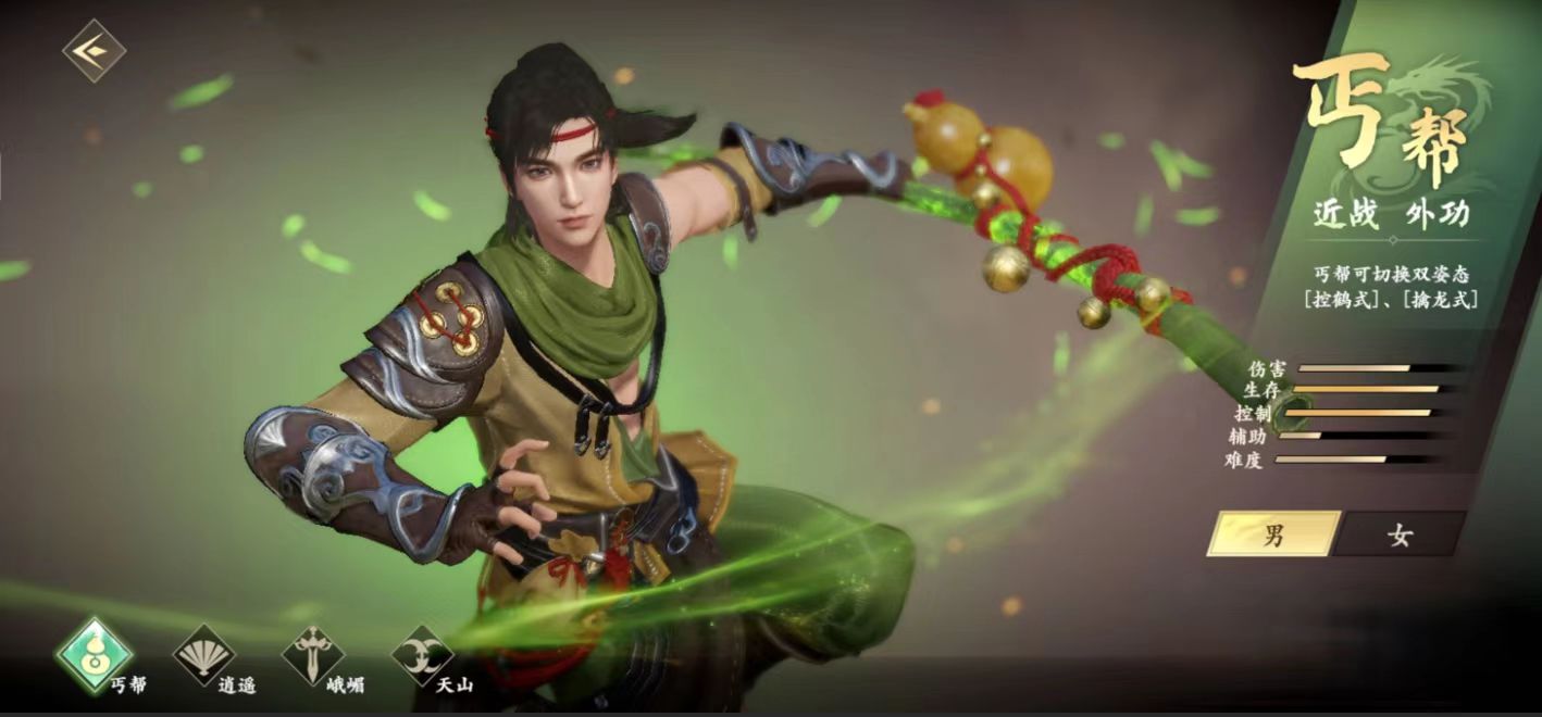 乔峰在游戏当中是丐帮这个职业当中的一个帮主,他的外貌是十分帅气的,同时作为帮主武功也是非常高强的,他还有一个隐藏身份就是契丹人的皇子,性格上面也是豪爽万分。但是他也有不为人知的身世以及悲惨的故事,在游戏当中,他主要的职业是一名近战型的输出角色,这也十分符合他丐帮帮主的身份。