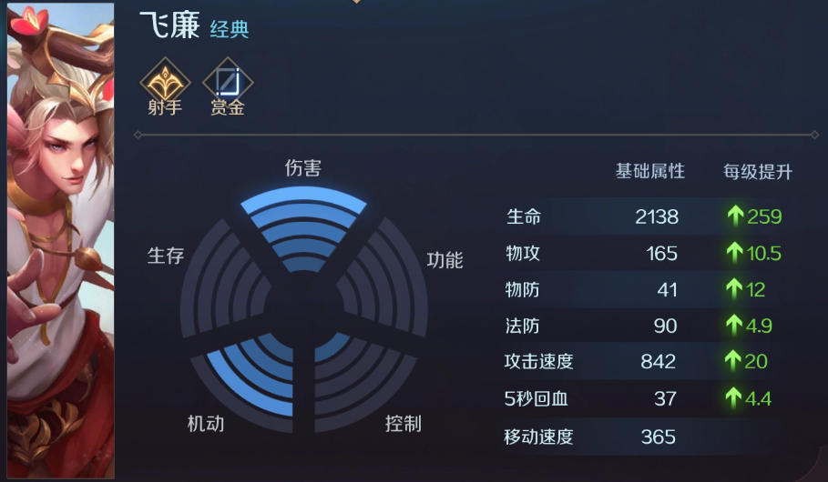 飞廉:该英雄应该算是游戏内灵活射手的代表,首先被动就有额外的移速加成,同时还可以通过普攻施加标记,这个标记能够让飞廉的二技能打出更多伤害,虽然标记会被消耗掉,但考虑到二技能本身是个扇形范围的AOE伤害技能,而且每层印记足足可以提升30%伤害,因此收益绝对是大于损失的。