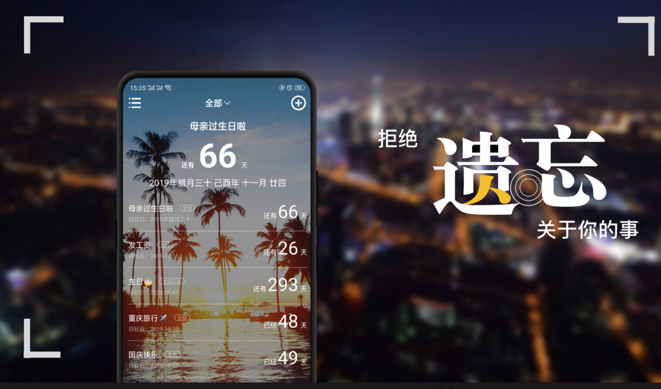 结婚纪念日,情侣纪念日,每个朋友家人的生日等你都可以用它来完成记录,提前撒那天的提醒,真的是给你带来太多的方便,距离下一个重要的日子还有多少天,都会有清晰的记录。