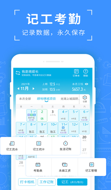 工友们可以方便地使用该软件记录出勤天数,并记录相关账单,让考勤管理更加便捷。用户可以将该软件下载到手机上,在需要进行考勤签到时,只需在软件上完成即可,既准确又省事。此外,该软件覆盖范围广泛,可在全国多个城市使用。