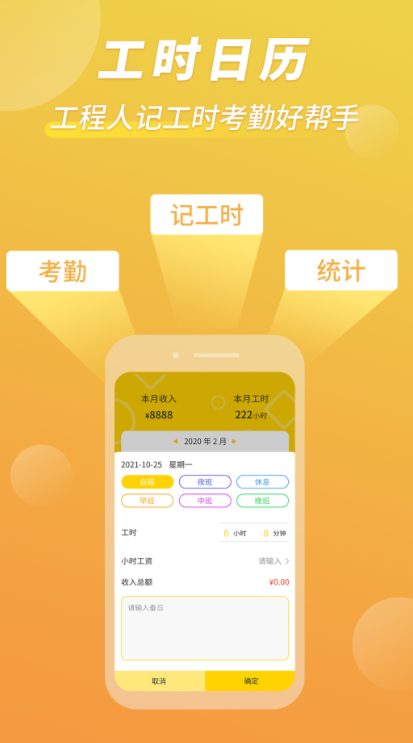 你可以自定义设置基本工资和考勤备注,方便灵活管理工资设定。该应用不仅可以用于记加班、记账、记考勤、算工资,还可以当作备忘录、记事本和日记本来使用。你可以随时随地使用应用,轻松记录加班和考勤情况,并查看日历展示。此外《记工时考勤》支持自动统计工资,特别适用于需要记加班和考勤的工友们。应用可以帮助你记录考勤时间、考勤备注等详细信息,使考勤明细清晰可见。这样,工资统计更加准确精确。