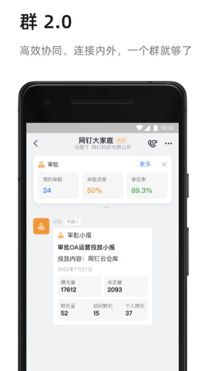 《钉钉》支持导入企业组织架构到通讯录中,实现统一的员工管理,方便快捷地查找和联系同事。员工可以随时随地进行安全沟通。《钉钉》提供了全方位的办公应用,包括考勤、签到、审批、请假、报销等功能,让办公流程变得更加便捷和高效。而且应用支持跨组织的审批流程,使企业和业务伙伴之间的沟通和协作更加顺畅。无论企业规模是大是小,都能通过钉钉实现高效的审批管理。