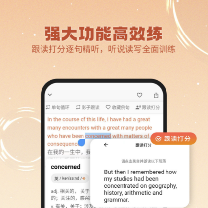 软件是那种可以多维度帮助大家学习外语的app,通过海量的最新资源更新可以让你接触到很多书本上没有的知识,流畅的节目你也是可以任意的收听观看的,点击单词就可以快速知道其中文意思。