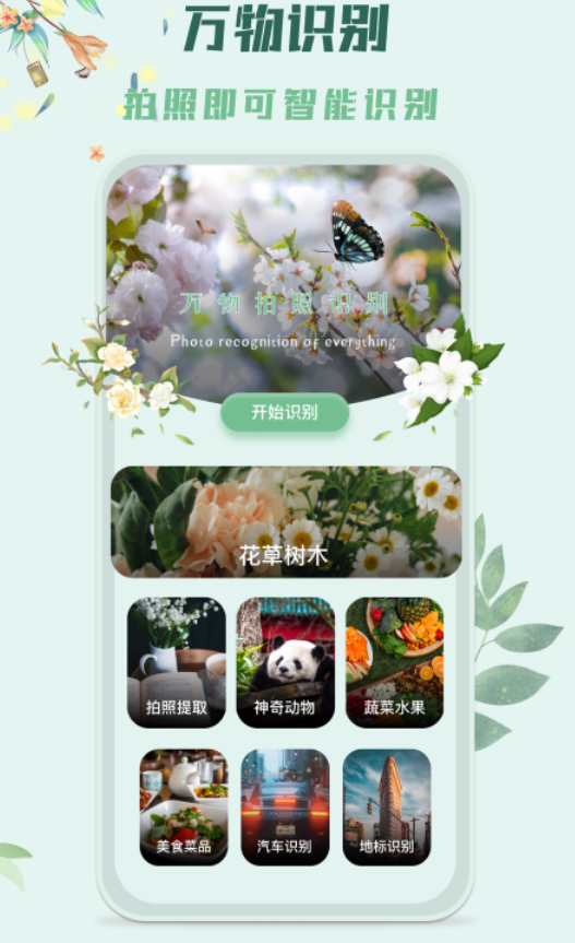 在此款app中万物都可以进行识别,比如花草植物,小动物,各种位置的小图标,即拍即得,非常的方便,花草树木一拍就知,小动物也能全方面的了解,水果蔬菜也能快速识别。