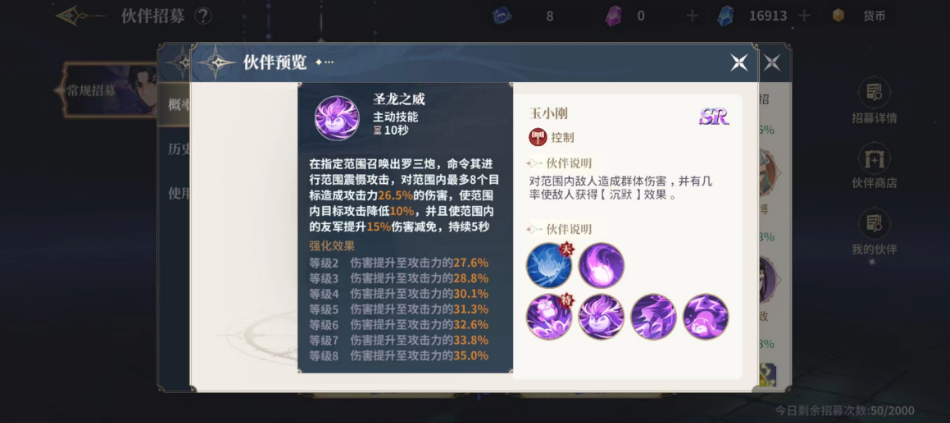 当然在玉小刚升级之后带来的攻击百分比也会随之提升,在它八级的时候这个伤害就会提升到攻击的一半,所以总体来说玉小刚升级之后的效果肯定是更好用的。