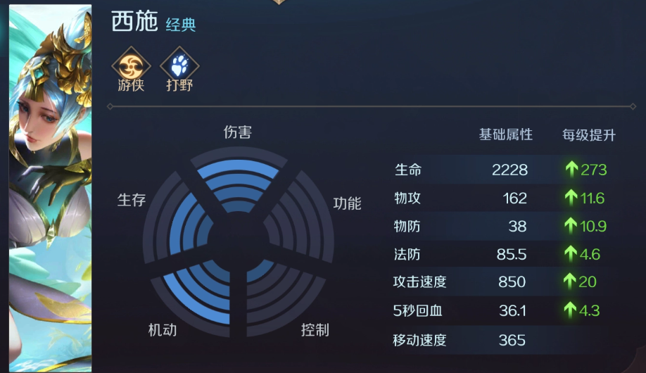 西施经常需要利用自己的高爆发秒人,所以橙色就带猎隼扑击通过三次攻击触发额外法伤来进一步增强她的爆发。