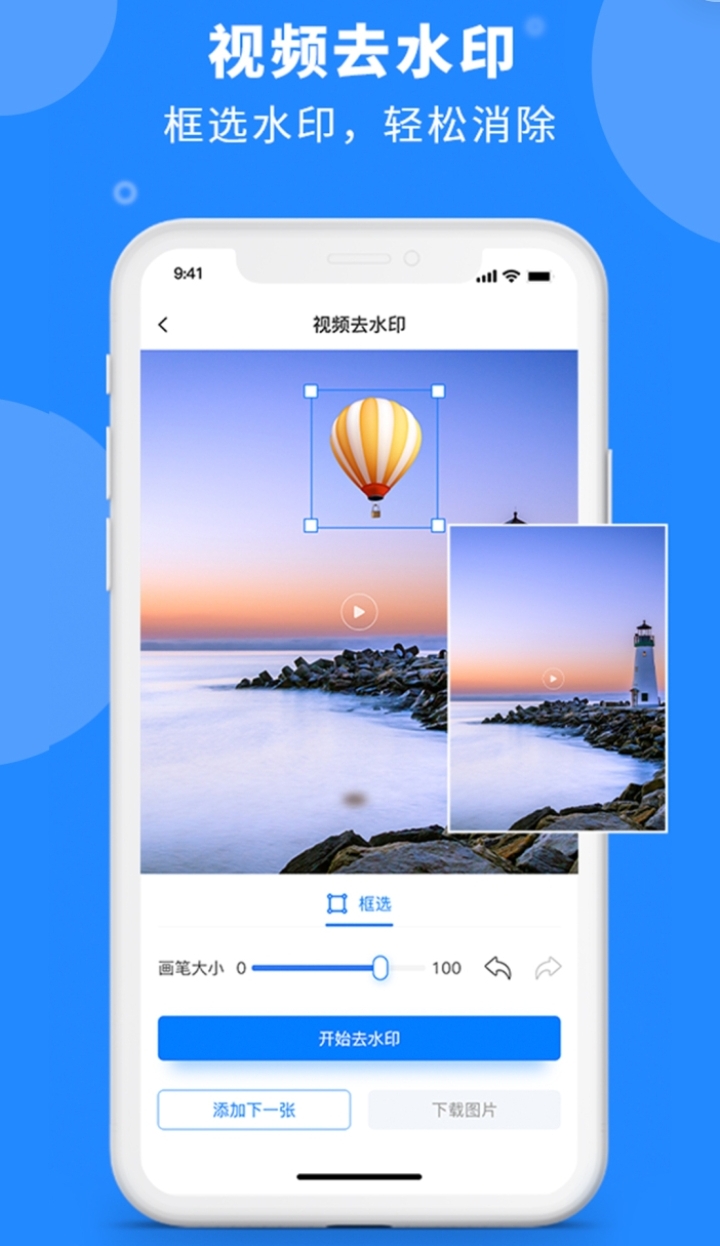 支持图片和视频去水印,同时也能添加水印,要去哪个部分的水印选择框住即可,几秒就可以完成。还可以截取视频,剪裁图片,调整背景和颜色比例,对处理视频有效果。