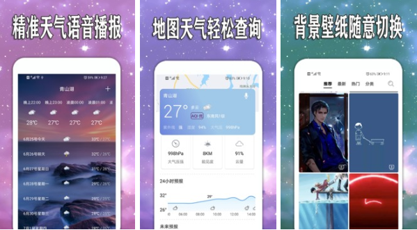 这个软件上天气的情可以选择通过语音播放的方式进行告知。如果说在一些特殊情况下可能会需要用这款软件的语音播报的方式来了解当下的天气情况。在这个软件上除了能进行天气的预报之外还会用于提供了很多精美的壁纸,想要换壁纸的时候就可以在软件上进行下载。