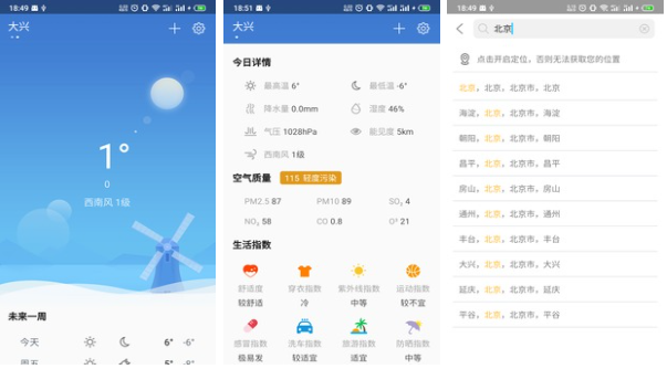 想要精准的提供天气情况,需要用户为这个软件开启定位。在开启定位到时候可以选择在使用软件时进行定位。软件能够为用户提供精确到县、区等位置。点击进具体位置后能看到今日具体的天气情况,包括今日的气压、可见度等。