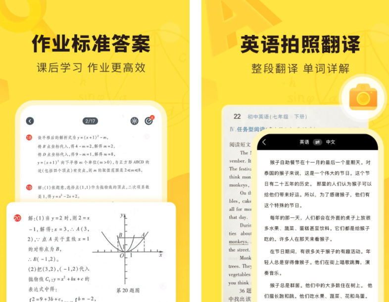 软件支持从小学到高中的各科目辅导与查题目,内置有语音翻译器,可以轻松英汉互译找答案。针对课堂作业与教辅作业,软件有海量题库素材,搜索速度快。而且不局限于抄答案,用户可以搭配同步题目视频学习。