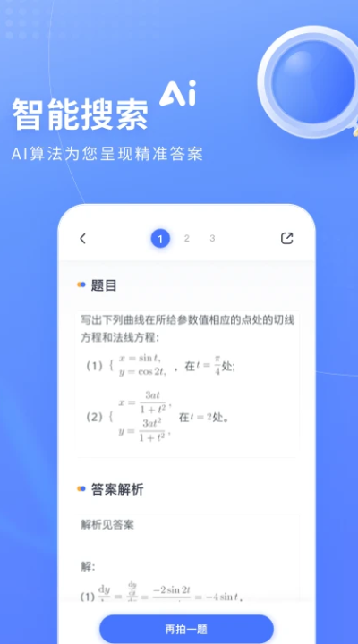 一款简洁好用的搜题软件,支持文本拍照以及语音搜题, AI智能快速识别试题,搜索在线的答案。选择题除了有选项之外,还有详细的答案解析,是你找答案的好帮手。