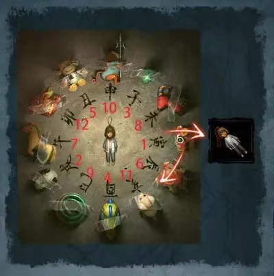 其实十二生肖的解谜方式还是很简单的,只需要按照顺利点亮就可以了,根据我们在天平上,在木偶脸上写的顺序来找到线索,推算出顺序就可以了,按照顺时针的顺序来点击。