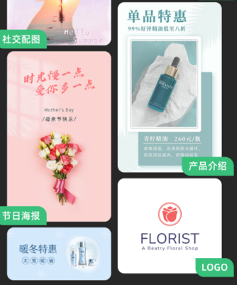 这是一款适合小白的设计软件,没有复杂的操作,就能快速做出好看的设计。轻松一键就能制作海报,logo等,从而满足各种各种场景的不同设计需求。