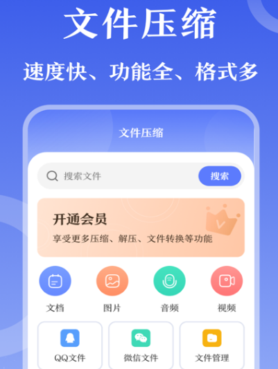 专业的压缩工具,其中有强大的功能任意文件,只要一键操作即可压缩,拥有详细的内容,支持各种格式预览,有非常方便的操作。可直观预览,拥有更多选择更多可能。打开主页面之后,看似非常简单,实则有着很强大的功能,支持直接打开压缩包内文档,另外也支持图片压缩以及视频压缩等多种不同的文件格式,可批量降低视频大小,让手机空间更充足。