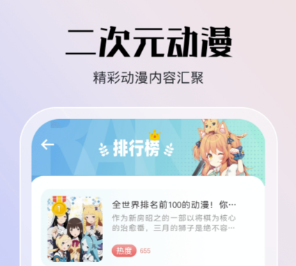 软件里边有丰富的动漫资源,你可以随意的搜索观看,另外还给大家提供了高清的动漫图片,不论是用作壁纸还是头像都是非常不错的。每天都会有不同的排行榜更新,你可以在里边搜索到自己喜欢的作品,系统也会根据你的观看习惯为你推荐相似的内容。