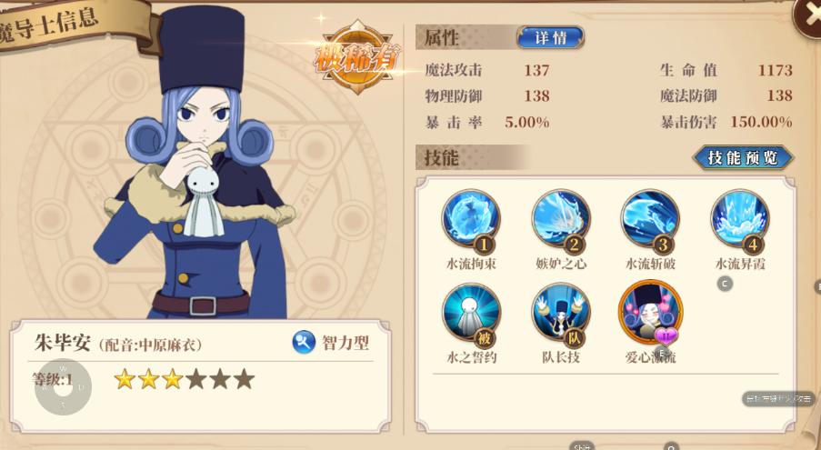 朱毕安作为游戏中获取难度最低的极稀有角色,是一定推荐玩家们去选择搭配的,这个角色自身属于【智力型】的,而且伤害属于魔法伤害,小编个人是觉得比较像辅助角色带有控制效果的,但是这个搭配是没有回复效果的,主要输出在与马卡洛夫身上,而朱毕安自身作为冰伤害中的第一人选,在破盾方面是有着不错的成就的,获取难度低,玩家们可以在日常签到就可以获得很多碎片,即使前期没有抽到也没有关系,在主线中一定是可以获得碎片进行合成的!