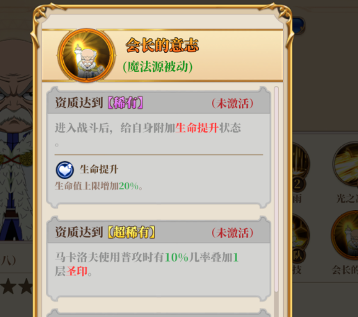 为什么说马卡洛夫非常能抗呢,当角色强化到2星的时候可以蝴蝶一个会长的意志,进入游戏后可以获得20%的生命上限加成!这套阵容对于破盾是很有一手的!