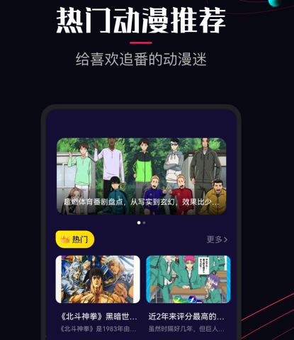 《囧次元》能为用户提供热门动漫,app内设置了动漫评分榜、排行榜等榜单,支持用户从这里挑选热门的动漫观看。此外,软件提供看图猜动漫等小游戏,让用户了解更多动漫内容。