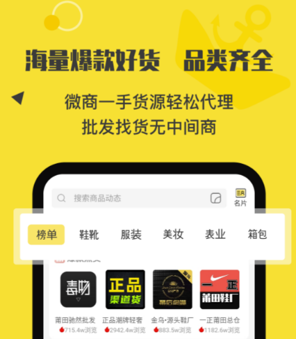 多功能的货源信息共享手机平台,丰富的货源你可以随意的挑选,各种代理好货都是超高的品质。智能的群发助手给你带来很多的便利,自动化的操作将满足你对微商的一切需求。实时的货品更新热门的商品随时都可以刷新,让你拿货更加的方便。