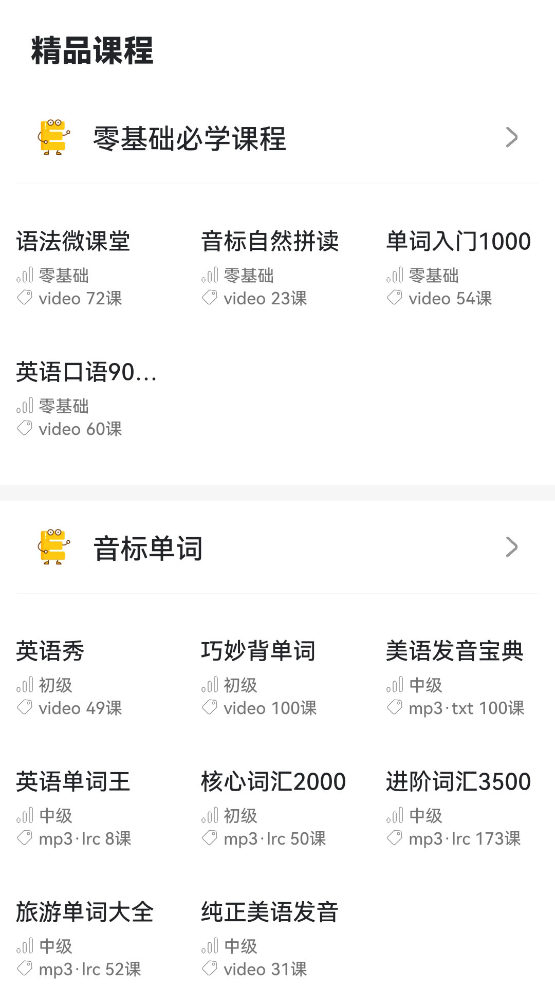 这款工具汇集了音标、新概念、出国英语、美剧英语等课程,注重实践,提供了精品视频和音频课程线上直接播放和一键收藏,实现快快乐乐学习。