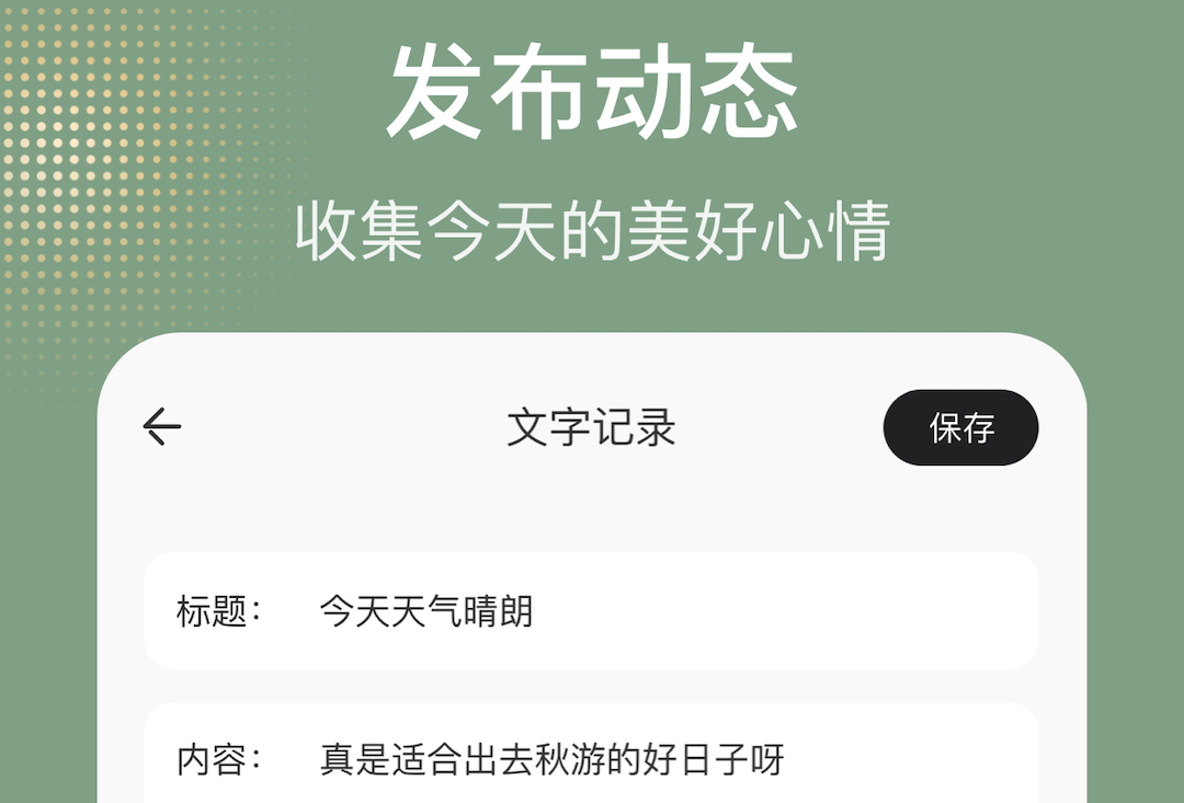 每个人的内心中都有一些小情绪,例如今天看到了美好的事物,就感到很开心,这时候可以分享你的看法,还有看见的东西,这种跟你有共同爱好或者心情的人就会分享并评论,从而认识到彼此的爱好。