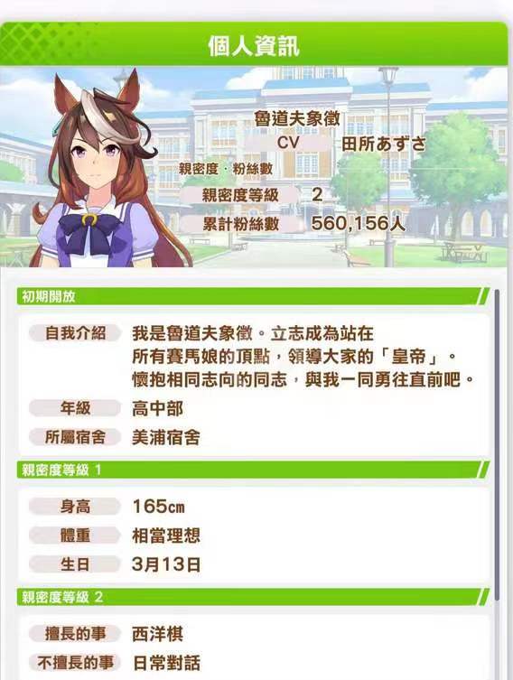 首先新手玩家面临的第一个难题大概就是需要开荒了,而皇帝是最适合新手玩家作为开荒的角色之一,作为一个在游戏当中均衡发展的赛马娘,她的养成方法还是十分简单的,首先来了解一下官方给出的基础面板当中她的一些技能分配吧,比如说她的初始速度有86点,而耐力有91点,还有83的力量值以及96的毅力值和94的智力值,可以看出她的基础面板上面的属性分配是比较均匀的,这也是她为什么适合新手玩家的原因之一。