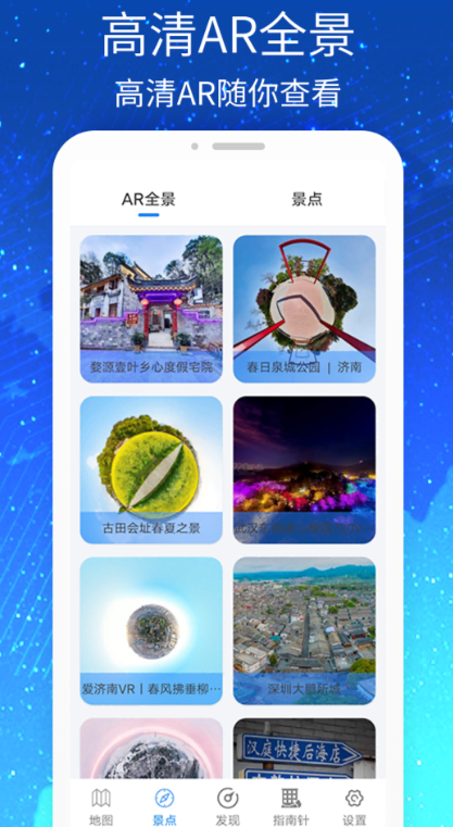 通过手机,大家可以查看各种美景,提升自身眼界,并开拓自身的学识。《三维VR实景地图》拥有丰富的地图类型,为大家提供各种环境下的舒适体验。大家可以查看自己当前所在位置,并可以通过一键锁定地图位置进行浏览。应用提供了多种观景功能,包括AR全景和景点介绍。除此之外,该软件提供了全国各省份的地图知识介绍,让我们了解更多地理信息。此外,还有丰富多彩的户外工具,如水平仪、雷达、卫星扫描等,帮助您更好地进行户外探索。