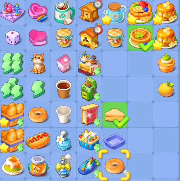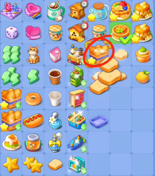 如果交换后能够形成三个或以上相同通盘的方块连成一条线,那么托盘就会变成面团。面团是面包合成的第二步,玩家需要继续将面团移动到相邻的方块上,进行消除操作。如果成功消除,那么面团就会变成袋装面包。袋装面包是面包合成的第三步,玩家只需要点击袋装面包,就可以从中取出吐司。吐司是面包合成的第四步,也是最后一步。