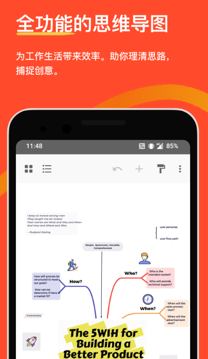 这个工具可是简约而不简单,操作起来超级容易!你可以在这里轻松展开思路,拓展想法和计划。只需点击分支末端,就能轻松添加子分支,还能左右扩展分支呢。如果长按分支上的文本,还会弹出功能菜单,方便你进行各种操作。完成后可以选择导出为多种格式,方便分享给好友。这个工具能确保你的文件安全,因为它有超级给力的云服务,能让你的导图在不同设备间之间共享。而且你就能用它随时同步导图,特别方便哦。