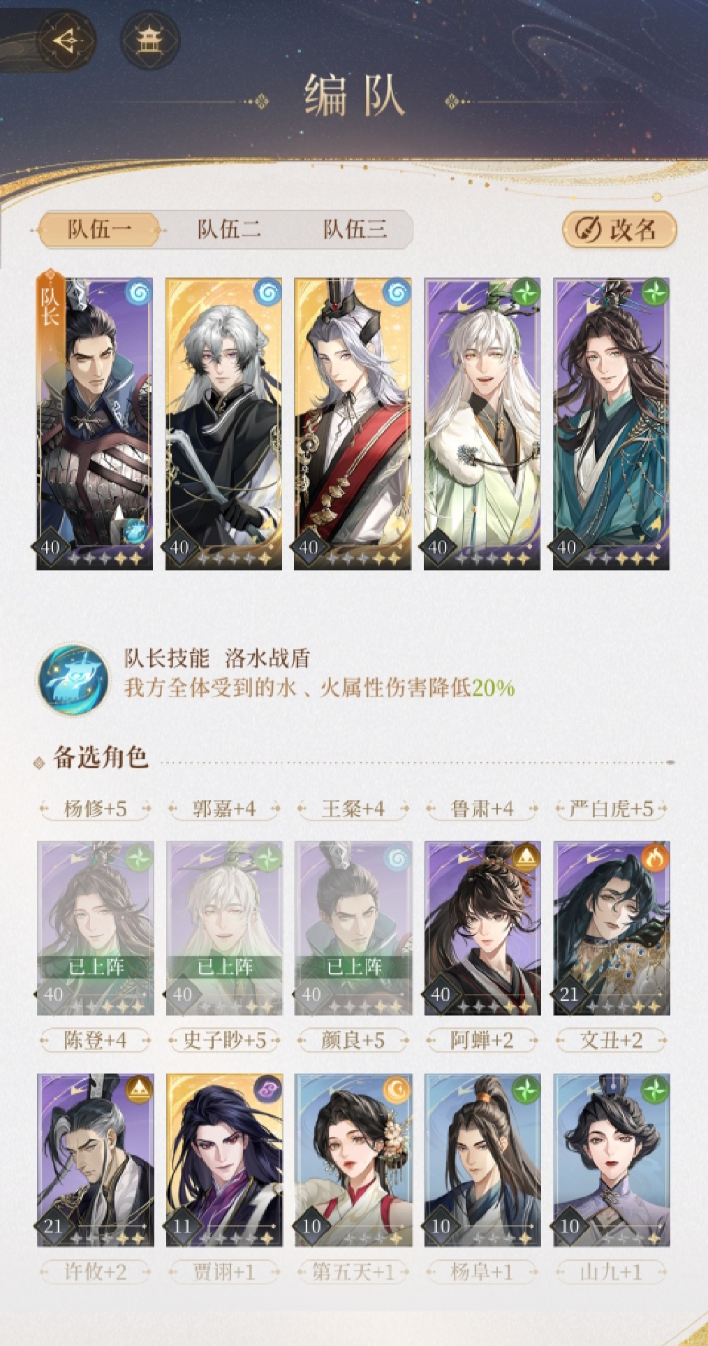 2,这个的核心就在于鲁肃是全队血量最低,此时他就可以触发效果:也就是刺客放大回合,固定吃大。此时鲁肃等于颜良火属性减去百分之二十的伤害再加上鲁肃水属性克制有伤害减免再加上下拉的防御,只要这一波鲁肃吃大招不死就可以保住这个非常重要的输出位子。