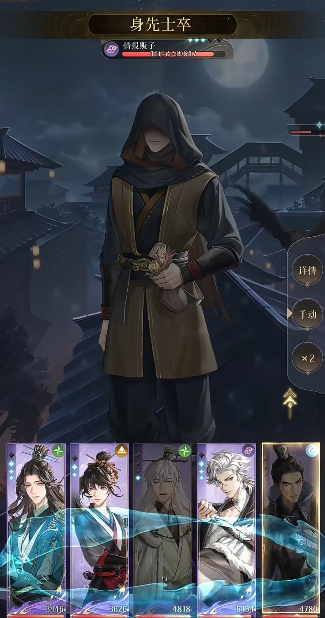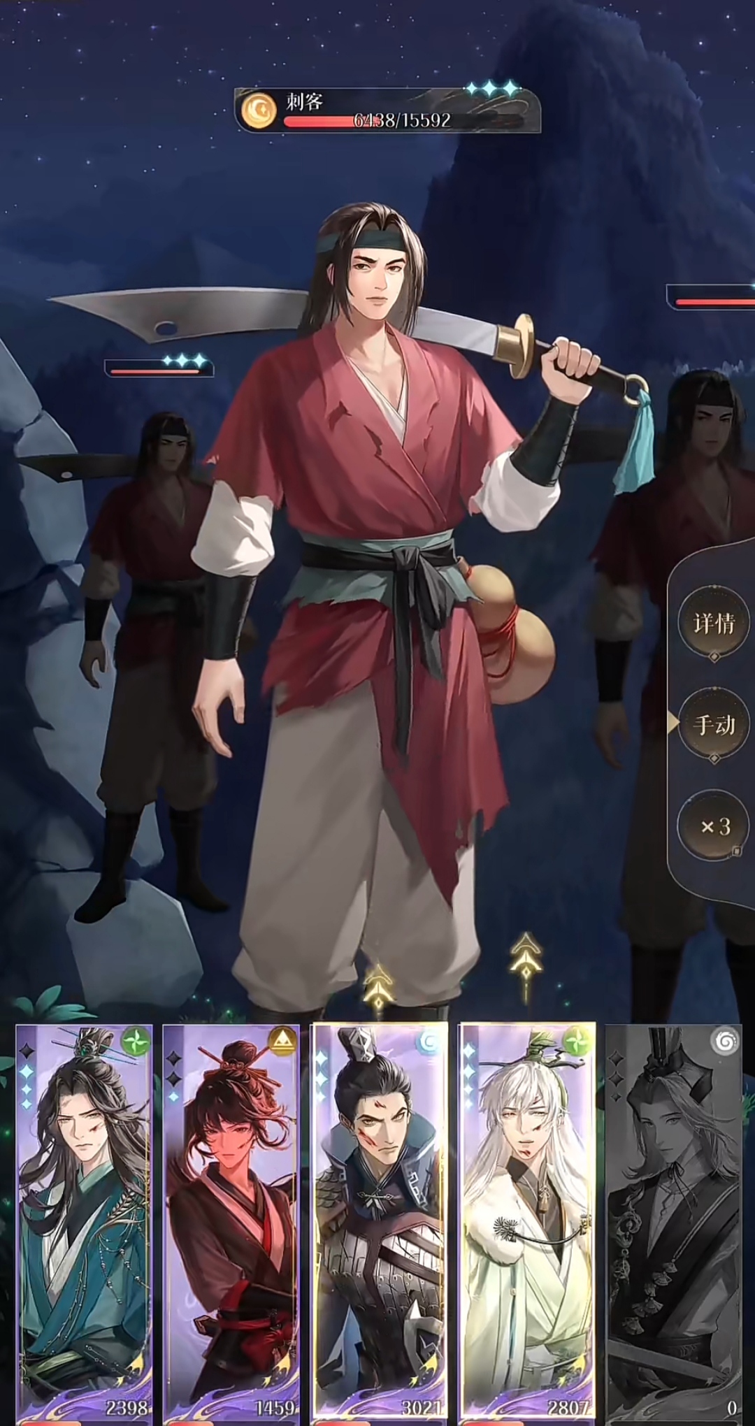 3,在盾角色嘲讽第二回合,颜良开大接力吃下平a,这样鲁肃能5000 血量进刺客大,有玩家测试过,5000 血量鲁肃可以下拉防御吃下刺客大,只要保住鲁肃一切好说,如果还能幸运的触发鲁肃的劝退就更好了,过了这个关键点就没什么难度了,基本上都可以过关。