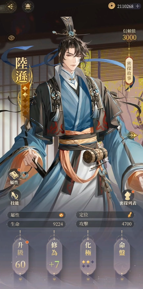 面板:六十级时它的生命并没有破万,相比部分ssr来说算是有些低了,不过其攻击直接达到了4700,这个数值对比很多输出角色都要偏高一些,因此单论输出这一块,他是领先很多其他同类型角色的,高额的攻击可以让普攻和技能同时受益,应用于实际战斗的时候,也能发挥更加亮眼的表现。