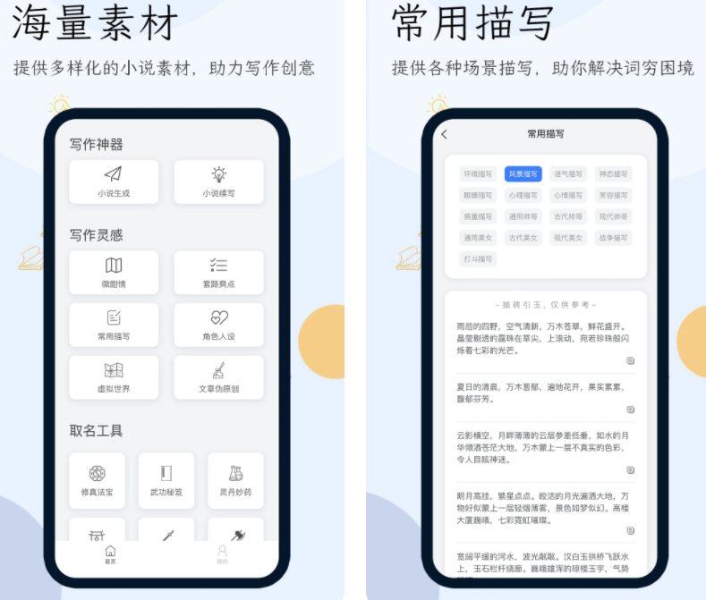 很多人想写文案、小说,往往因为没有灵感而写不出文字,而这款软件里面有超多文章素材、常用描写、好词好句分享,拿捏最近热门的梗、网络流行语,帮你写文章下笔如有神。