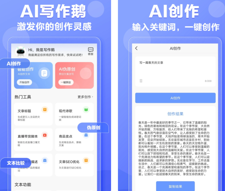 这款写作软件加入智能AI创作功能,输入文章标题可以生成符合主题的内容,还有特色的直播带货脚本生成功能,智能生成商品卖点、推销文案以及与直播口播有关的文稿,各行各类话题文章应有尽有。