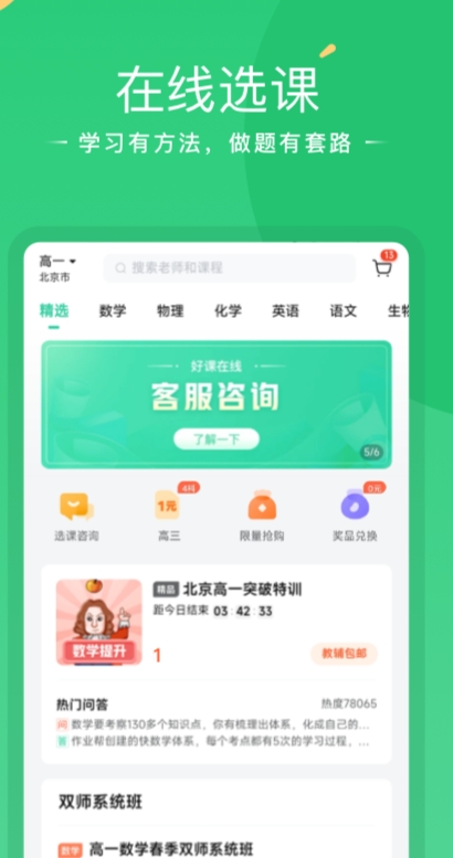 很多孩子在上学的时候都会出现偏科的情况,这种现象屡见不鲜,家长想要给孩子补课,可是找家教单独补课太贵,可以试试好课在线,对偏科的严重的学科进行补习,课程视频无限回放。