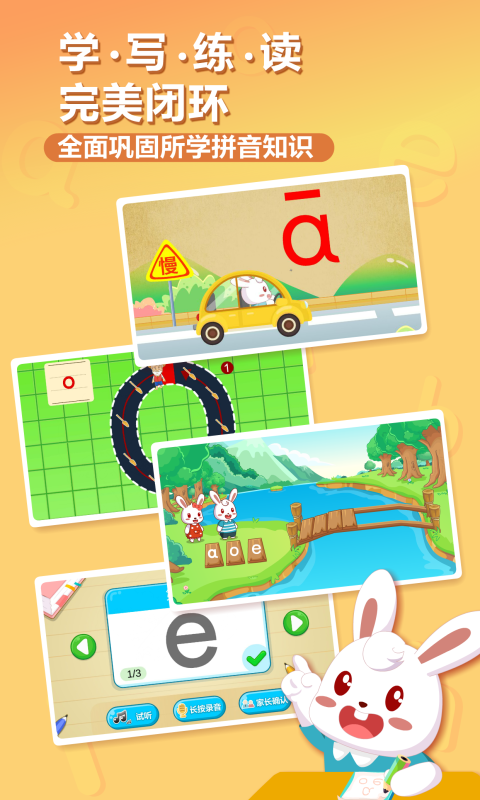 这个APP里有丰富的语音教学资源,不仅可以帮助小伙伴们学会拼音,还能够教小伙伴们去标准的发音,全方位从会认会读到会用,保准让小伙伴们学会完整的拼音。当然为了让小伙伴们学起来更有趣,里面的教学还都是很丰富的,不仅适合小朋友们,也适合大朋友们。