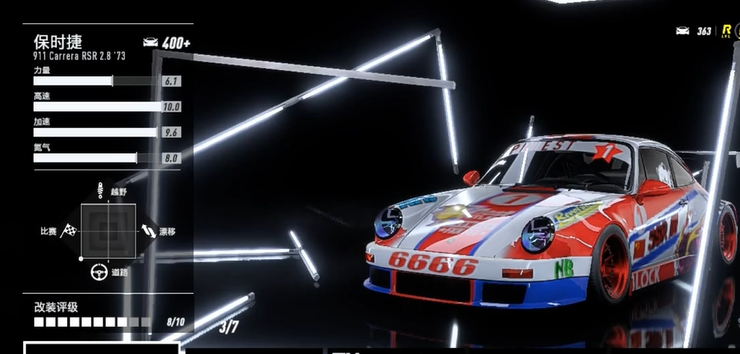 高达10.0点,而且是游戏中非常少数的存在,同时在加速和氮气方面,也是高达了8.0左右,不过这款车需要大家早点到16级去解锁配件,最关键的是,专属发动机非常的便宜,方便大家去改装!