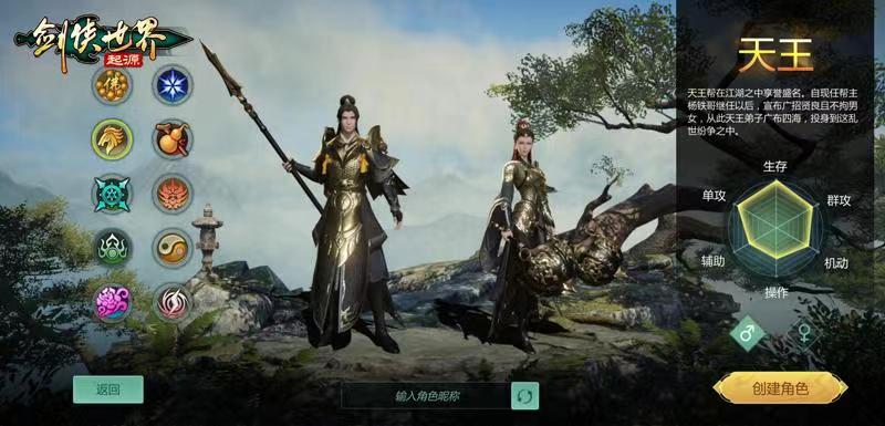 第七个就是天王门派,门派在江湖中生存多年,享誉盛名。主要擅长近身攻击,速度很快,一定程度内克制远程职业,无懈可击。因其帮主广招贤良,所以弟子遍布四海。在出任务时比较好行动。主武器为枪,可以在门派中自己DIY枪支,开动奇思妙想,种类不限设计。还可以出售枪支赚金币。第八个是丐帮,也是很多江湖电视剧中常提到的。丐帮门派充满自由和野性,没有固定修炼位置,可以在八方游历。抵制一切不民主行为,弟子都来自市井之中,所以重情重义,团结一致。