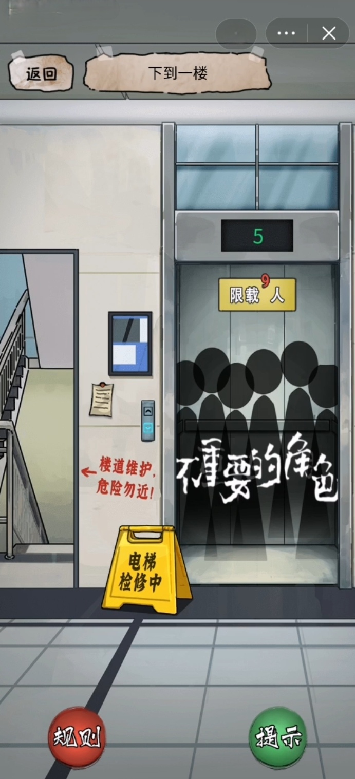 了解规则过后再去点击外面的电梯按钮,这时候玩家们会发现这里的电梯人是满员的状态,接下来就要把电梯当中藏着的黄牌子找出来放到电梯门口,最再捡起地上掉落的红笔拖动到电梯的墙上面,再点击楼梯在楼梯的下面会找到花盆,花盆下面会有一张纸条,纸条会提示玩家们进行操作,第一个点就是用手铲挖出泥土,然后点击盆栽的泥土再点击镜子再点击返回按钮去寻找到墙壁上的面板盖。