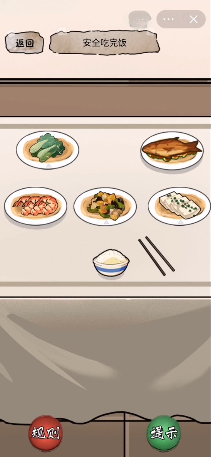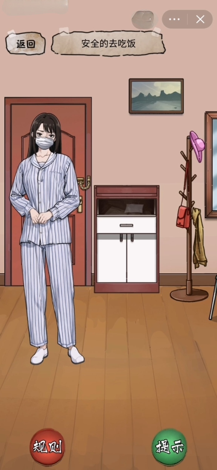 抽屉打开以后寻找到口罩把口罩戴上之后再点击门,将门打开过后来到厨房再次查看手表当中所有的规则,最后再点击餐桌餐桌上面有五道不一样的菜,而玩家们要做的就是将外形是三角形的菜吃掉。