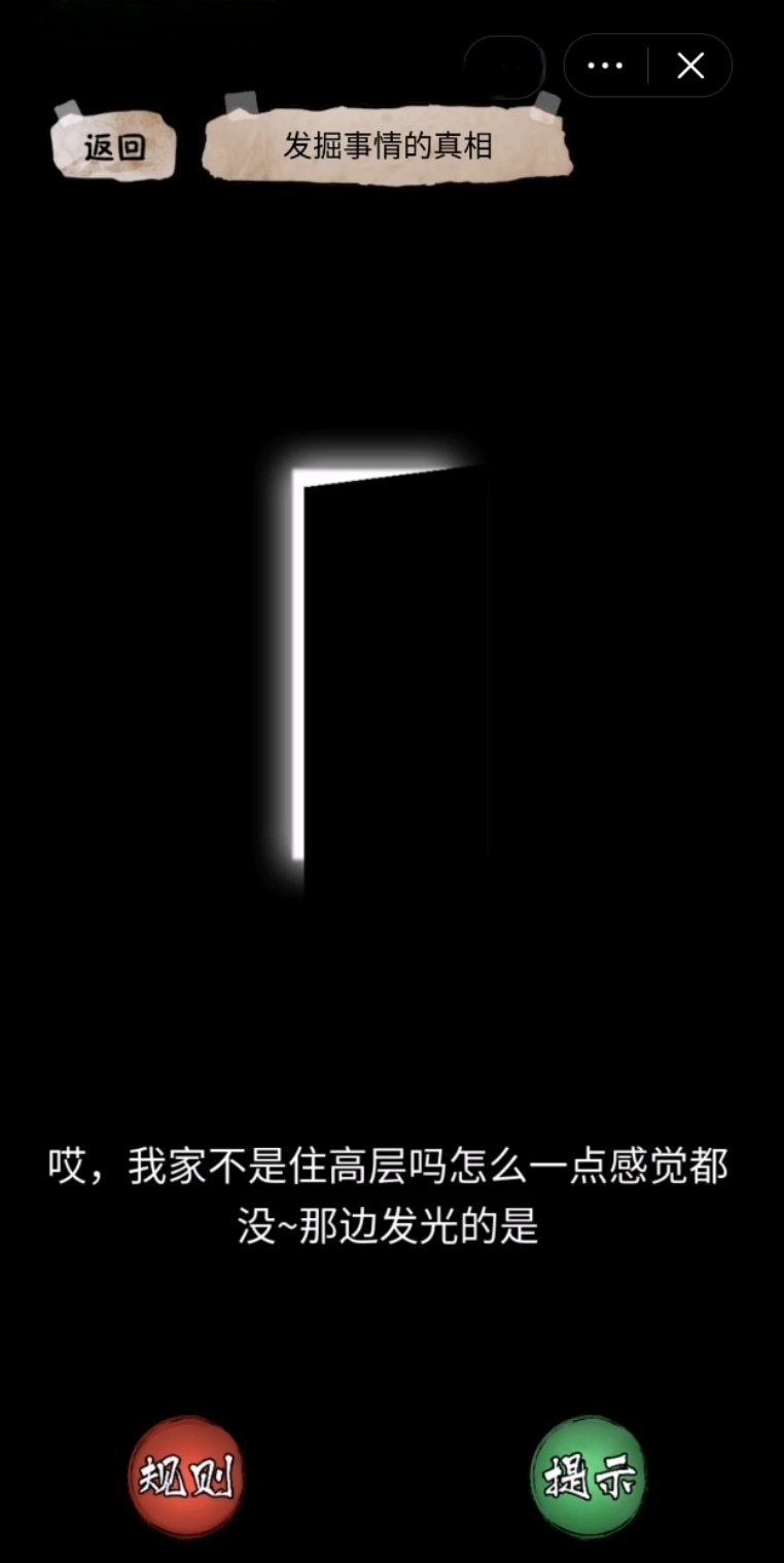 后面会出现一个选项的选择在这里玩家们要注意选择一定要拒绝妈妈才可以继续游玩,然后点击墙壁上的照片将它往左边移动就会发现墙壁有一个洞,查看洞内的东西过后再一次返回卧室打开手表观看规则,这时候会有人来进行敲门,敲门的时候再点击查看,最后一步就是最重要的一步了,玩家们需要选择房间当中的窗户进行逃生,这时会出现一个发光的门,点击发光的门过后就会发现真相了。