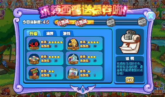 大家可以用点卷买游戏中的装备和道具,从而让角色的战斗力更强,还可以用点卷买一些加速服务,让游戏进程更快,另外也可以用点卷买游戏内的物品,也让游戏财富积累的更多,从而去交易,尤其里面的抽奖活动还是比较多的,大家可以用点卷买抽奖机会,赢得更加丰厚的奖励。