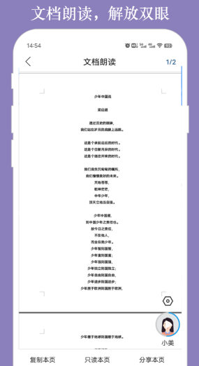 一款颇为专业的朗读工具,除了支持单音源的朗读之外还加入了强大的多人语音制作功能,从而模仿出对话的效果。软件还支持拍照识别文字再转化以及悬浮窗识别朗读功能,适用性很广。